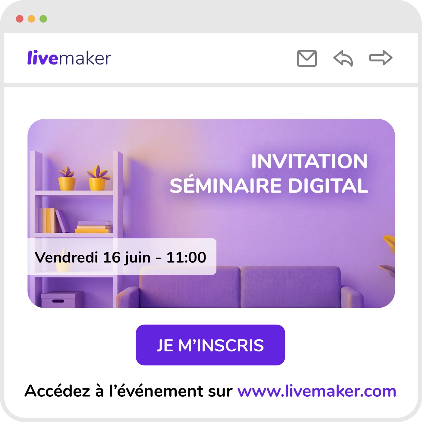 Simplifiez le parcours d’inscription et maximisez la participation à vos événements digitaux. Offrez une expérience fluide, personnalisée et accessible, de l’invitation jusqu’à l’accès au live, pour convertir plus facilement vos audiences.
