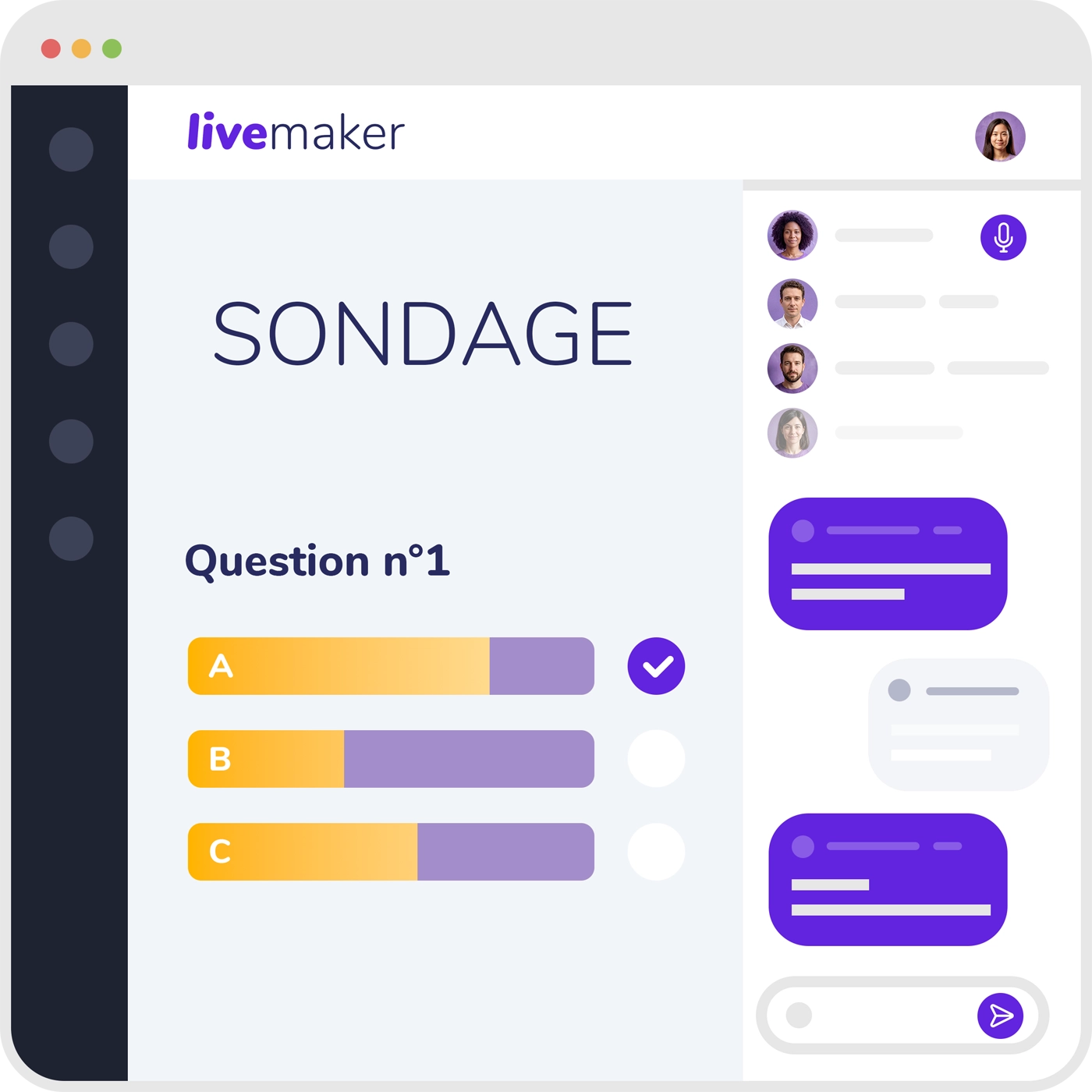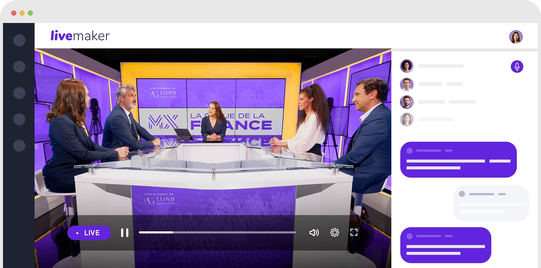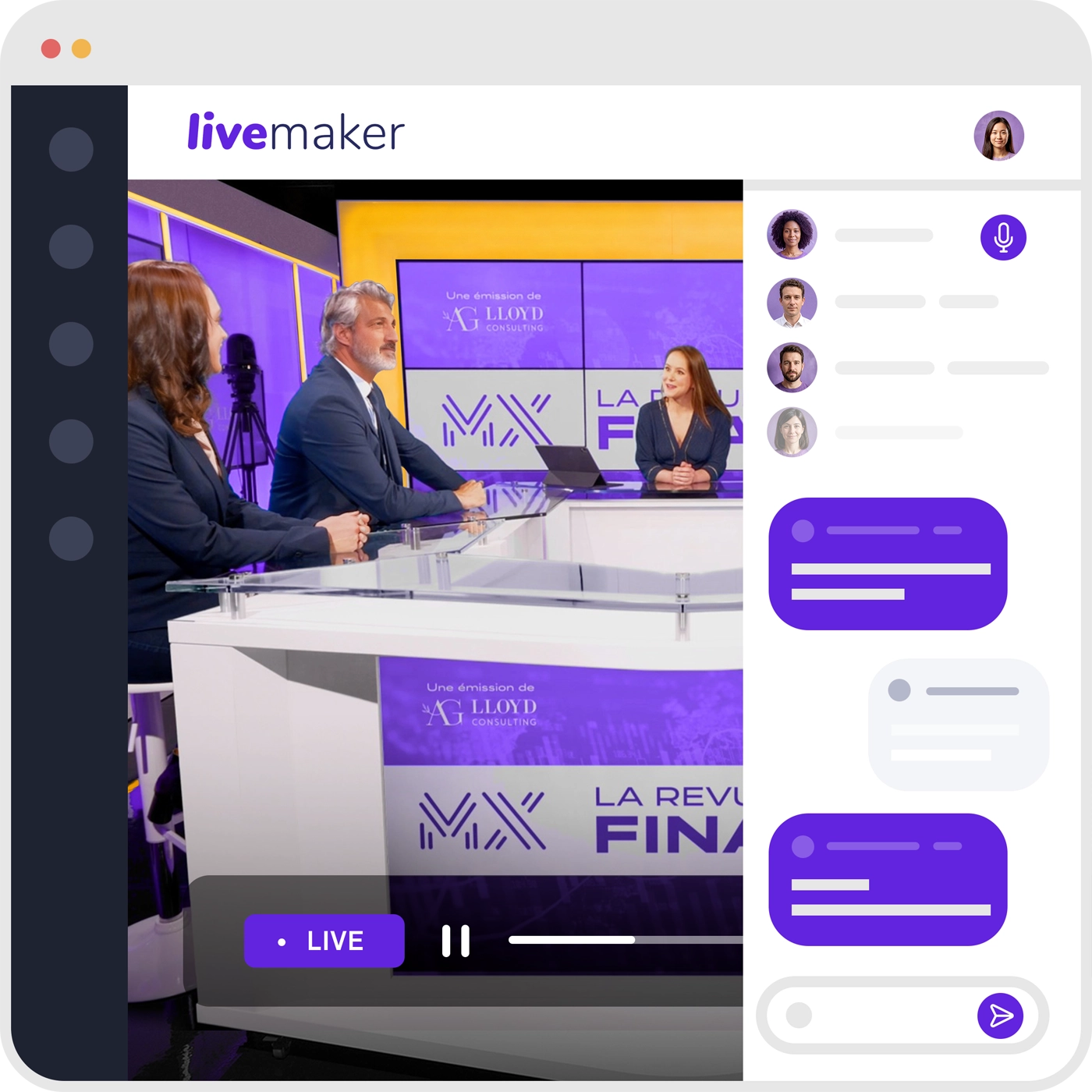 Livemaker est une plateforme de diffusion interactive pour événements vidéo conçue pour répondre aux besoins des organisateurs d’événements virtuels ou hybrides.