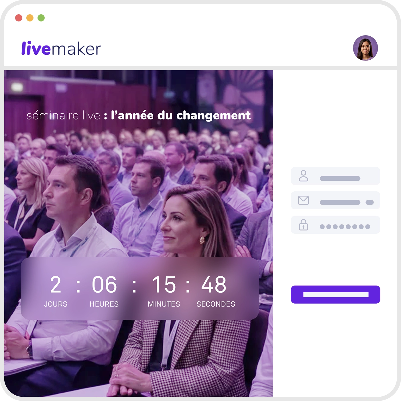 Aucune installation n’est requise : Livemaker fonctionne entièrement dans votre navigateur. L’interface intuitive en glisser-déposer permet de créer un site événement, configurer les inscriptions, lancer un live HD puis activer le replay, sans compétences techniques. Pour les besoins avancés, des intégrations API et un support expert sont également disponibles.