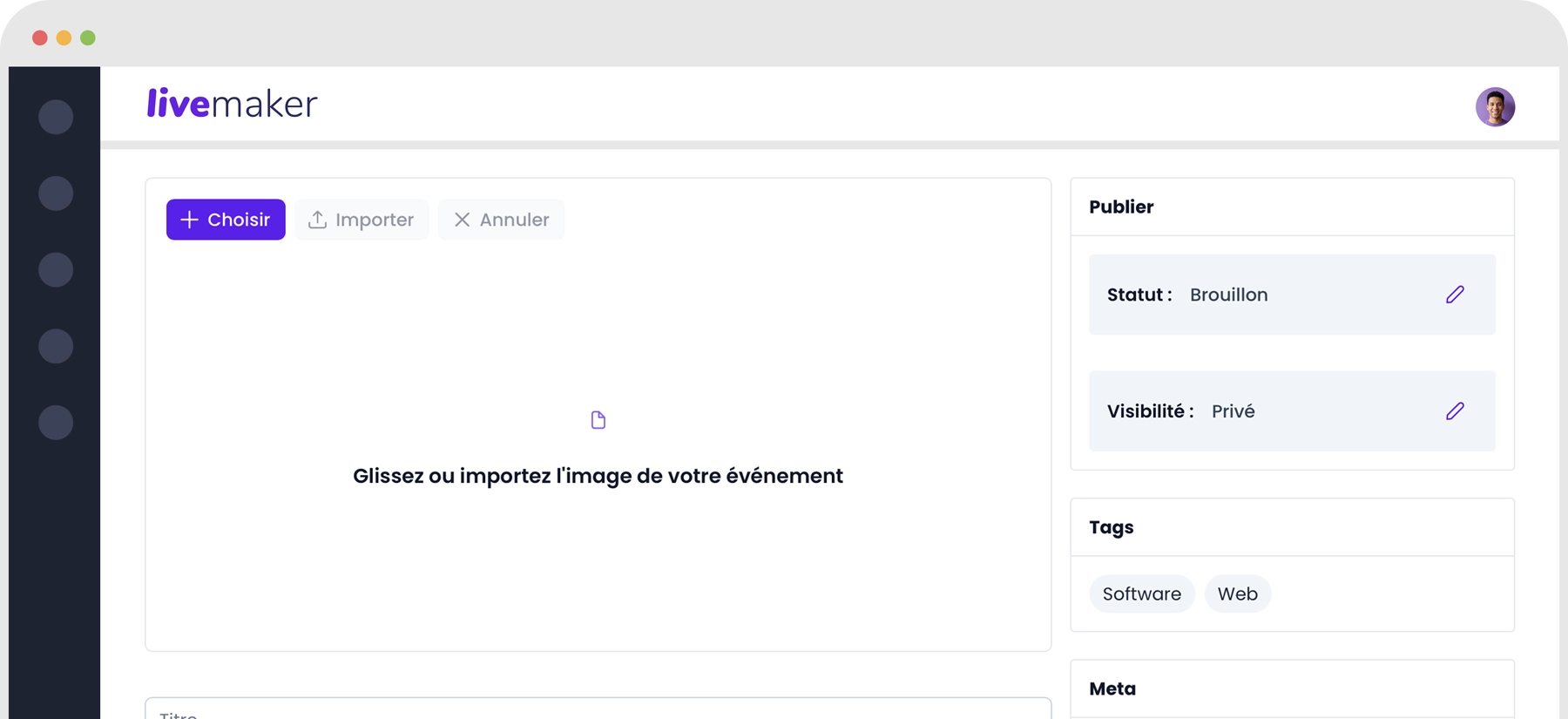 Une URL unique, un impact immédiat. En quelques clics, Livemaker génère une landing page à vos couleurs : logo, palette, typographies. Ajoutez programme détaillé, bios des speakers, plan d’accès et logos partenaires. Intégrez formulaire d’inscription, compte à rebours et teaser vidéo pour créer l’attente. Votre événement possède désormais son site officiel, clair, riche et engageant.